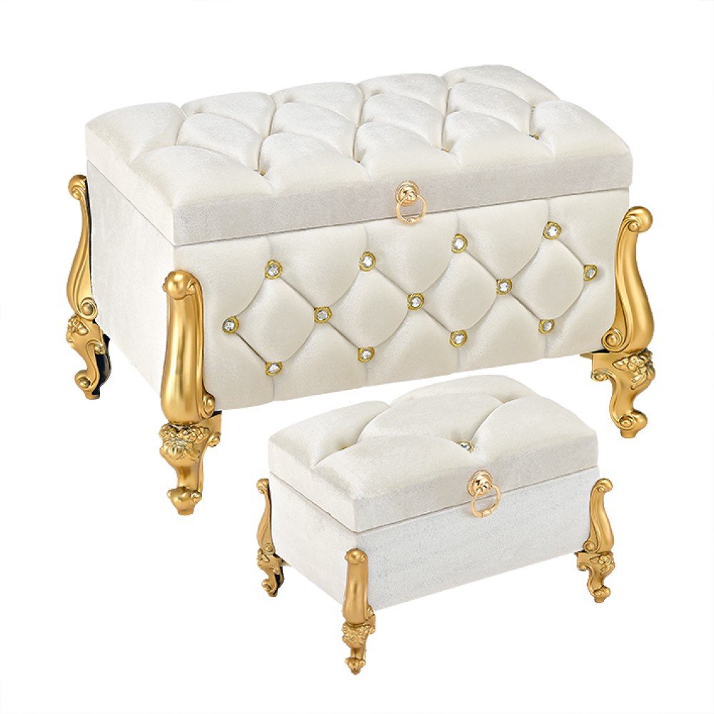 Προσθέστε μία πολυτελή και αριστοκρατική πινελιά στη βάπτιση του παιδιού σας με το σετ BOXVEL05 ιβουάρ. Αυτό το εντυπωσιακό σετ περιλαμβάνει δύο μπαούλα σε εκλεπτυσμένο χρώμα ivory, με εντυπωσιακή καπιτονέ υφή, λαμπερές διακοσμητικές πέτρες και χρυσά σκαλιστά πόδια που θυμίζουν μπαρόκ αισθητική.