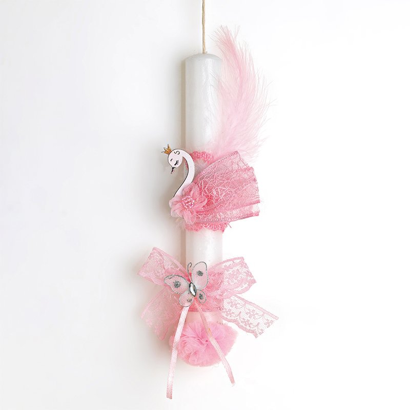 Αυτή η πασχαλινή λαμπάδα με θέμα κύκνος είναι χειροποίητη και αρωματική, κατασκευασμένη για να εντυπωσιάσει με την εξαιρετική ποιότητα της και τα ζωηρά χρώματα της. Πολύχρωμες κορδέλες και στοιχεία την στολίζουν. Το κερί είναι ιδανικά διακοσμημένο για να χρησιμοποιηθεί ως διακοσμητικό. Κάντε δώρο στα αγαπημένα σας πρόσωπα μία πασχαλινή λαμπάδα η οποία ξεχωρίζει και θα μείνει στο βάθος του χρόνου.