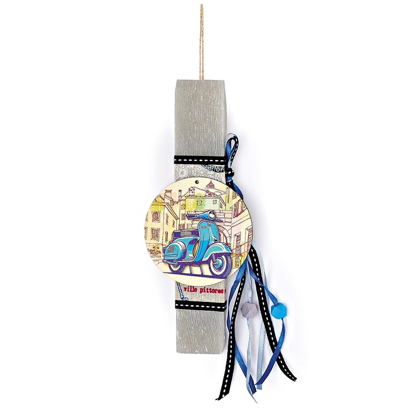 Αυτή η πασχαλινή λαμπάδα με θέμα βέσπα είναι χειροποίητη και κατασκευασμένη για να εντυπωσιάσει με την εξαιρετική ποιότητα της και τα ζωηρά χρώματα της. Κάντε δώρο στα αγαπημένα σας πρόσωπα μία πασχαλινή λαμπάδα η οποία ξεχωρίζει και θα μείνει στο βάθος του χρόνου.