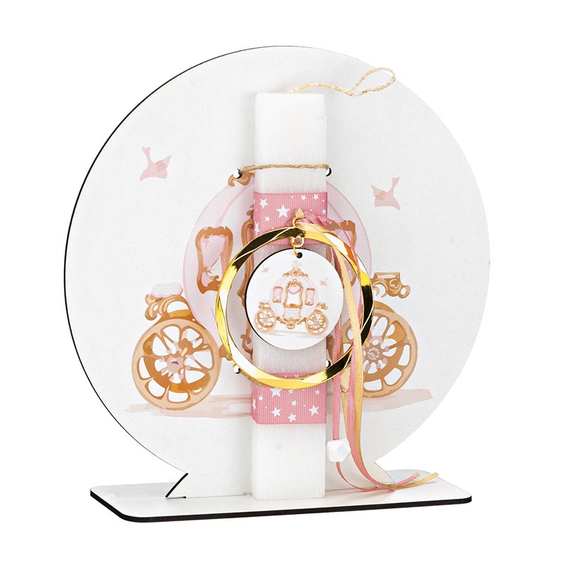 Αρωματική Πασχαλινή Λαμπάδα Πάνω σε Ξύλινη Βάση με Θέμα Βασιλική Άμαξα