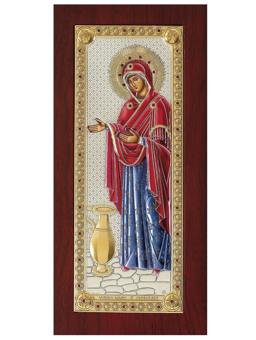 Αυτή η υψηλής ποιότητας θρησκευτική εικόνα είναι κατασκευασμένη από εξαιρετικής ποιότητας υλικά και έχει υποστεί ειδική επεξεργασία ώστε να παραμένει αμετάβλητη στον χρόνο. Η λεπτομερής απεικόνισή της μεταφέρει όλη την ιερότητα και τη χάρη της, καθιστώντας την μια εξαιρετική επιλογή για δώρο.