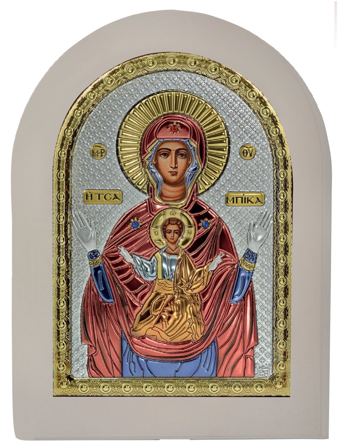 Ασημένια Εικόνα Παναγία η Τσαμπίκα 15x21cm. Δώρο για Γονιμότητα & Οικογενειακή Ευτυχία