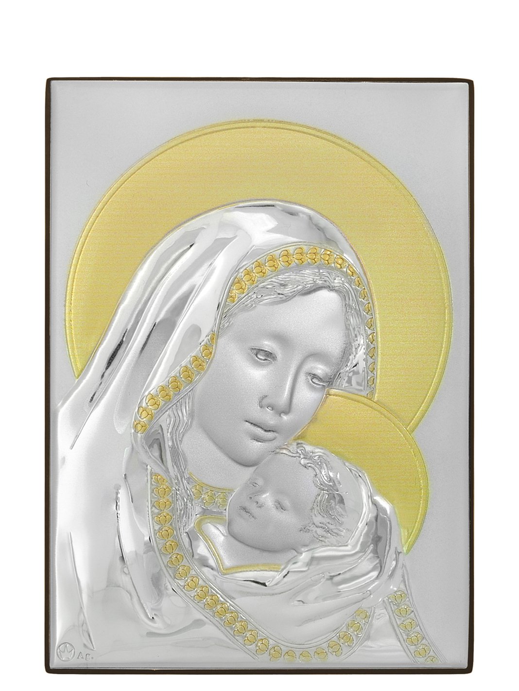 Ασημένια Εικόνα Παναγία με τον Χριστό 21 x 15 cm ,Δυτικού Ρωμαϊκού Στιλ, Σύμβολο Μητρικής Αγάπης.
