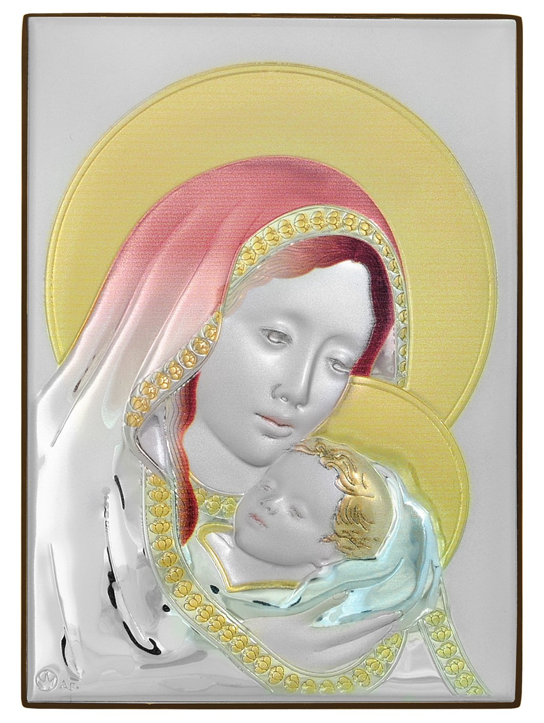 Ασημένια Εικόνα Παναγία με τον Χριστό 28 x 20cm ,Δυτικού Ρωμαϊκού Στιλ ,Σύμβολο Μητρικής Αγάπης.