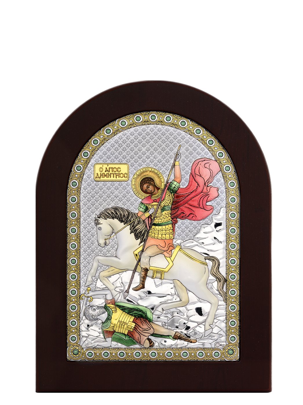 Αποκτήστε ένα σύμβολο πίστης, δύναμης και προστασίας με την Ασημένια Εικόνα του Αγίου Δημητρίου. Ο Άγιος Δημήτριος, ο Μεγαλομάρτυρας και Μυροβλύτης της Θεσσαλονίκης, είναι ένας από τους πιο σεβαστούς Αγίους της Ορθοδοξίας. Ως στρατιώτης-Άγιος, συμβολίζει το θάρρος και την ακλόνητη πίστη, ενώ η ιδιότητά του ως Μυροβλύτης τον καθιστά σύμβολο της θείας χάρης και της επούλωσης.