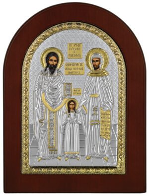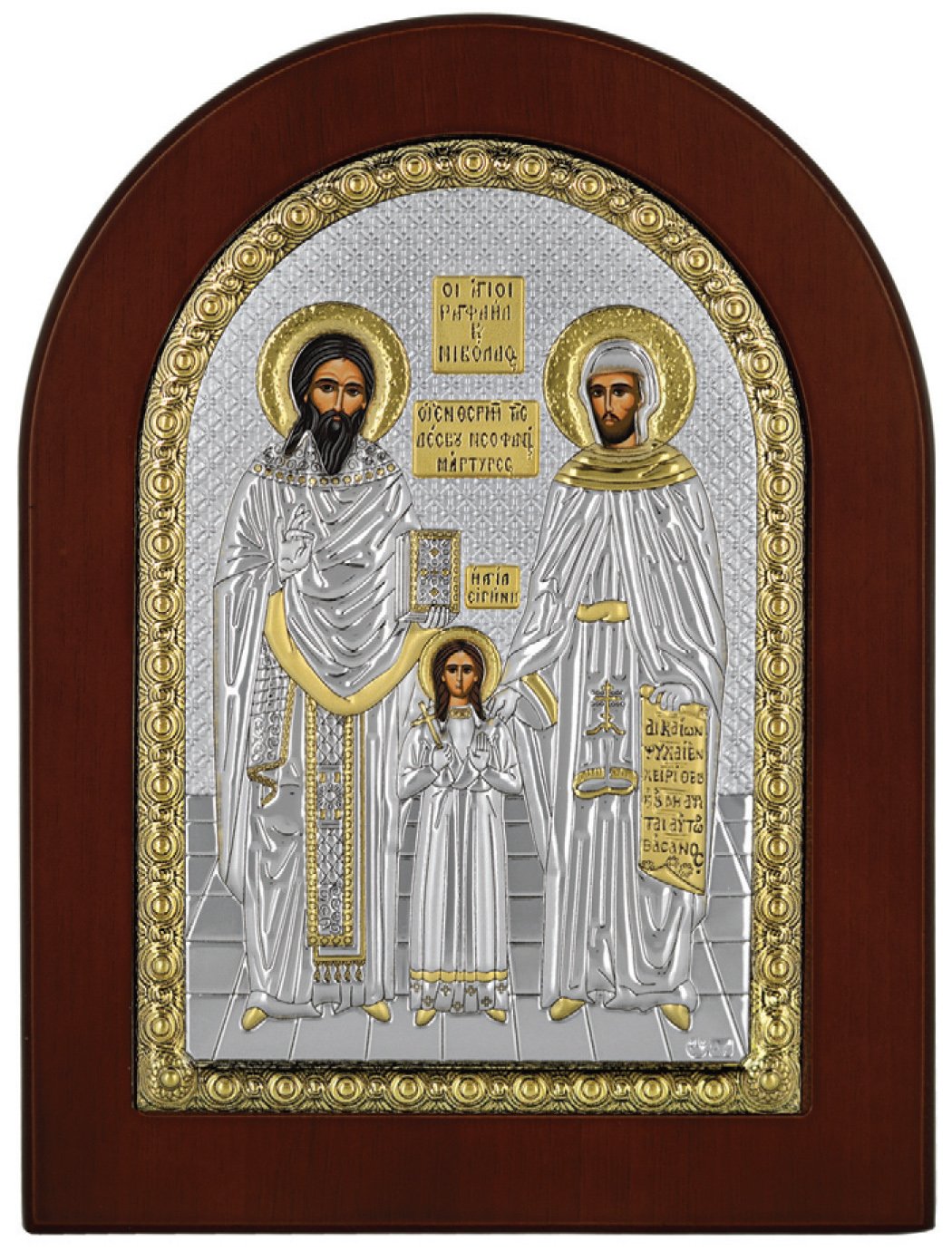 Ασημένια Εικόνα Άγιοι Ραφαήλ, Νικόλαος & Ειρήνη 15x21cm. Προστάτες & Ιαματικοί.