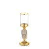 Πολυτελές Κηροπήγιο CANDLE HOLDER (12x48cm). Χρυσό μεταλλικό στέλεχος με κρυστάλλινες λεπτομέρειες και γυάλινο κύλινδρο. Ιδανικό για Glam/Art Deco διακόσμηση, γάμους και επίσημα δείπνα.