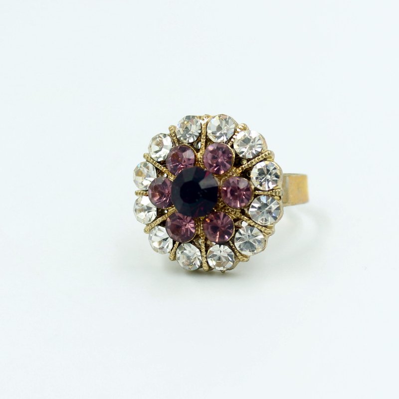 Δαχτυλίδι σε σχήμα στρογγυλό με χρωματιστά στρας.