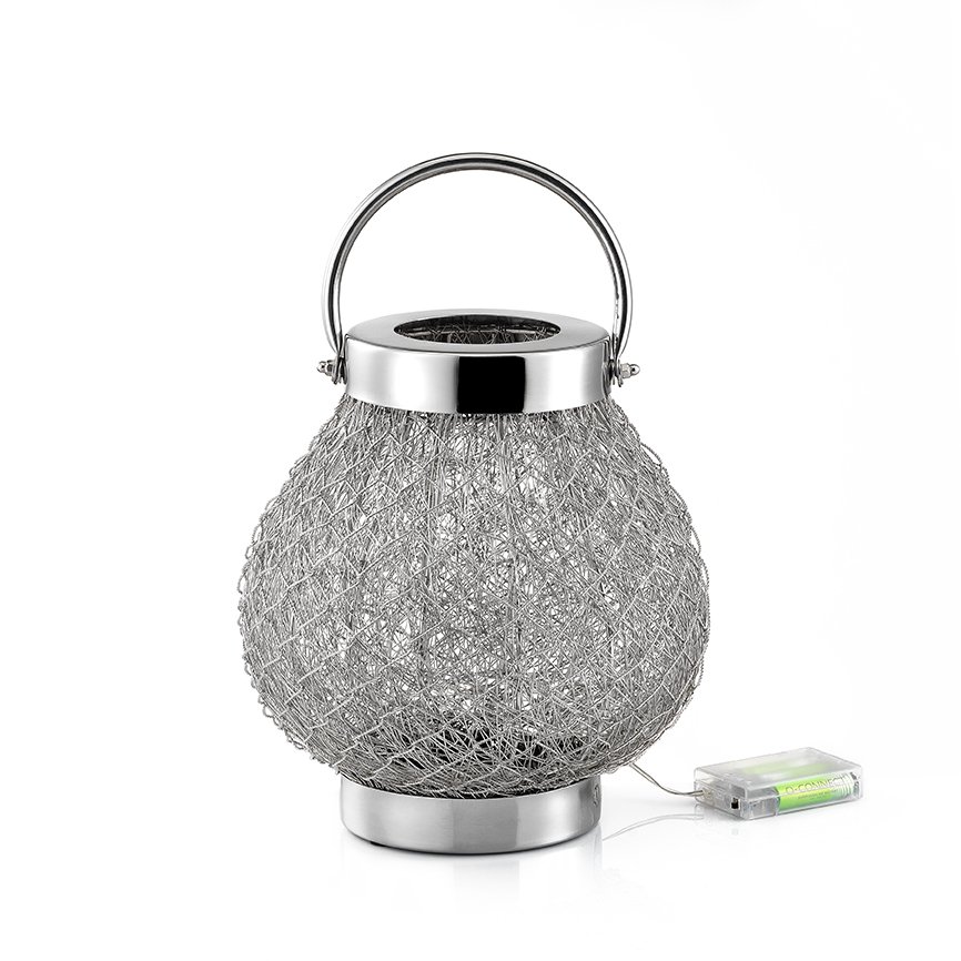Χειροποίητο φανάρι από πλεγμένο σύρμα, φτιαγμένο από σίδερο και ανοξείδωτο ατσάλι με ενσωματωμένα φωτάκια led.