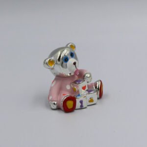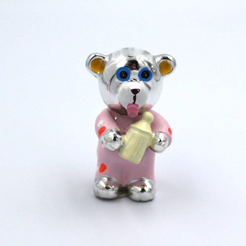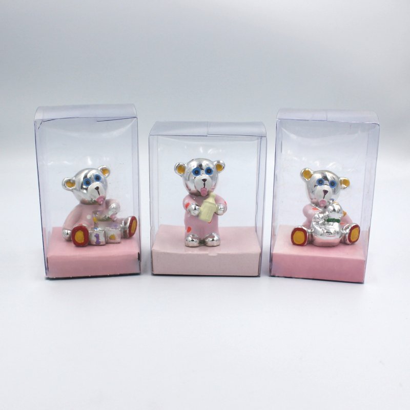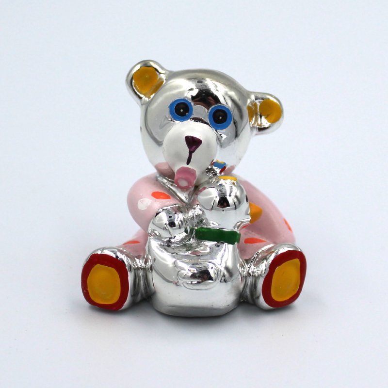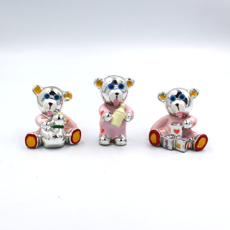 Διακοσμητική πολυεστερική μπομπονιέρα baby αρκουδάκι σε 3 σχέδια, με επάλειψη από ασημί βαφή αναλλοίωτη στο χρόνο.
