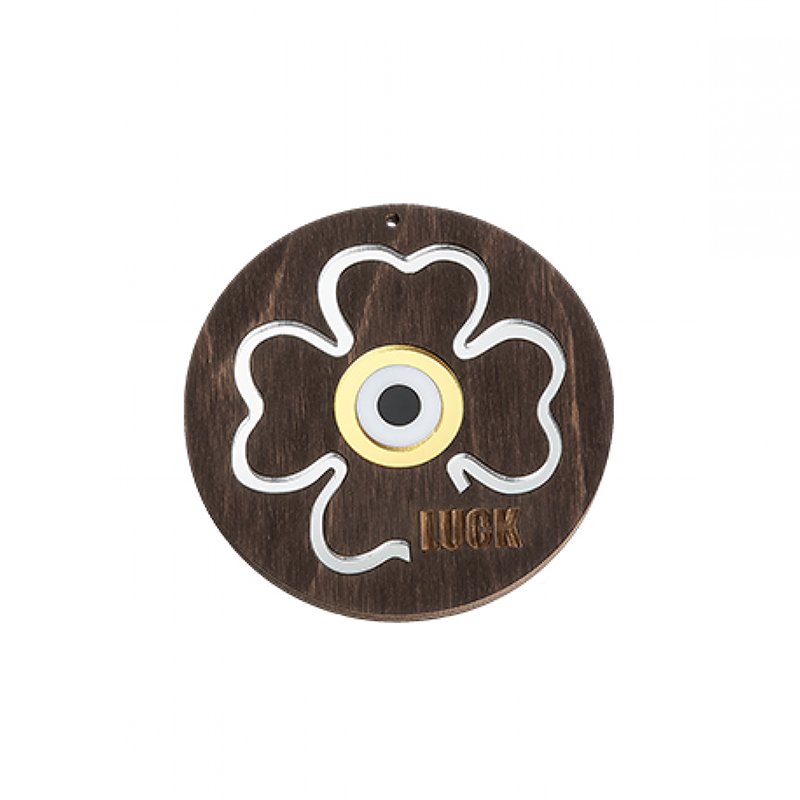 Διακοσμητικό Ξύλινο Γούρι Τριφύλλι σε Βάση με Χρυσό Μάτι.