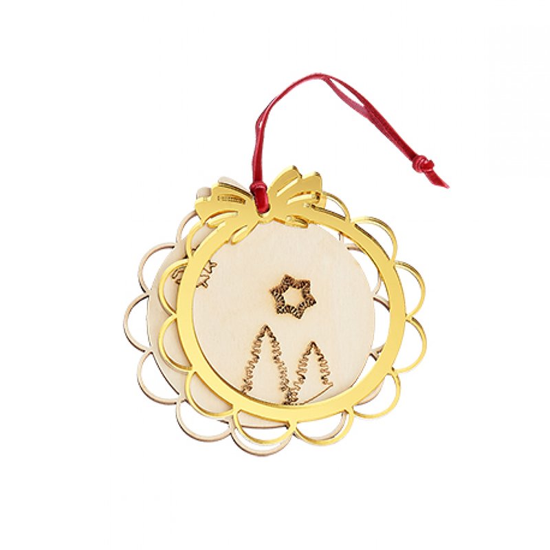 Διακοσμητικό Ξύλινο Γούρι Χριστουγεννιάτικη Μπάλα με Έλατα σε Χρυσό Χρώμα.