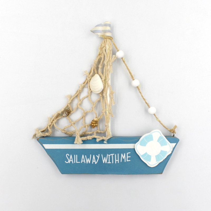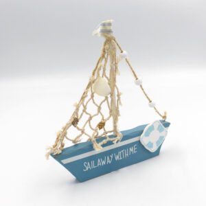 Διακοσμητική ξύλινη μπομπονιέρα καραβάκι, διακοσμημένο με σχοινάκι και κοχύλια.