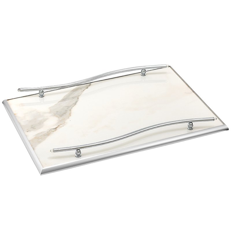 Εξαιρετικής ποιότητας δίσκος γάμου τύπου μάρμαρο σε ασημί χρώμα.