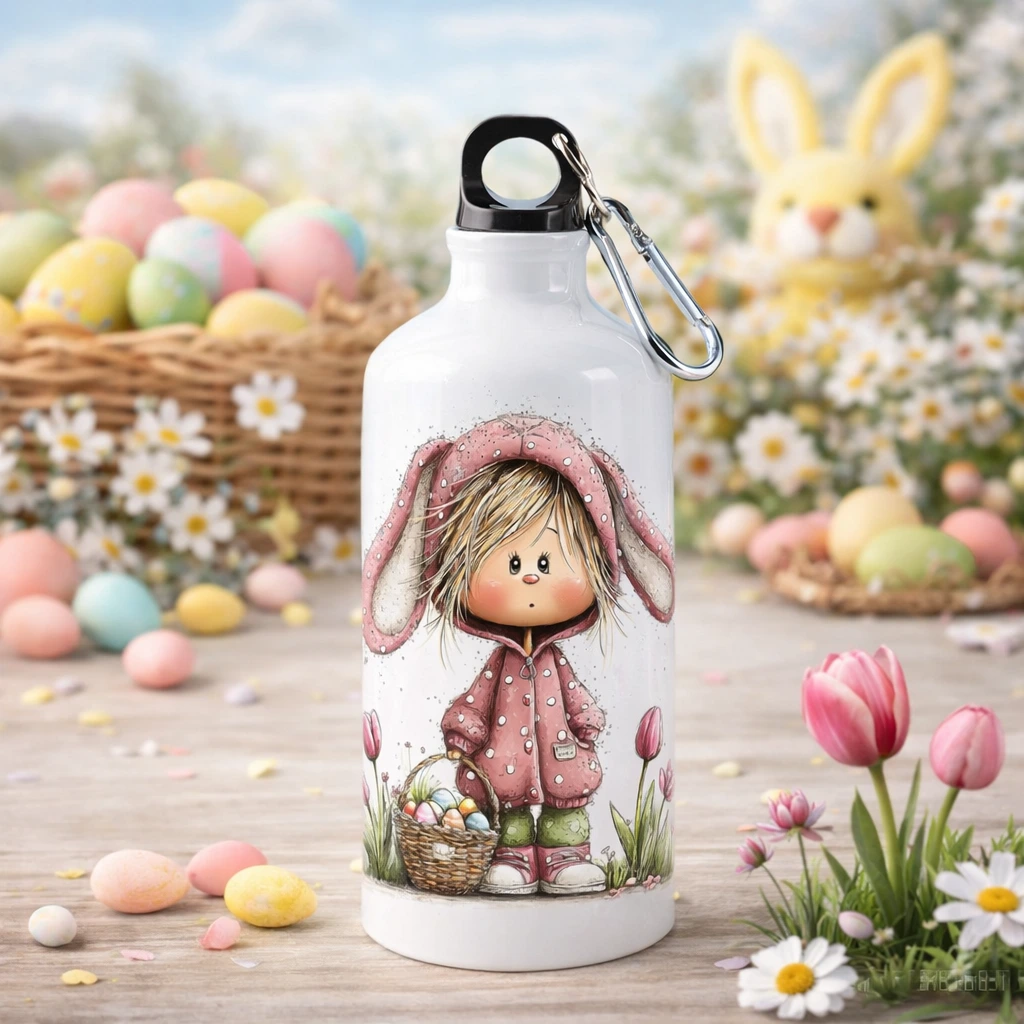 Το προσωποποιημένο παγούρι “Easter Girl” αποτελεί μια εξαιρετική εναλλακτική πρόταση για πασχαλινό δώρο ή χρηστική μπομπονιέρα βάπτισης. Με το καλλιτεχνικό σχέδιο που απεικονίζει ένα κοριτσάκι με αυτιά λαγού ανάμεσα σε τουλίπες, συνδυάζει την ανοιξιάτικη αισθητική με την καθημερινή χρηστικότητα.