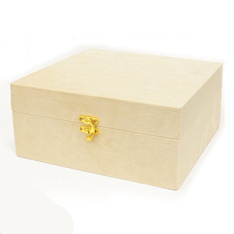 Κουτί από βελούδο σε εκρού χρώμα με χρυσό κλιπ εξαιρετικής ποιότητας.