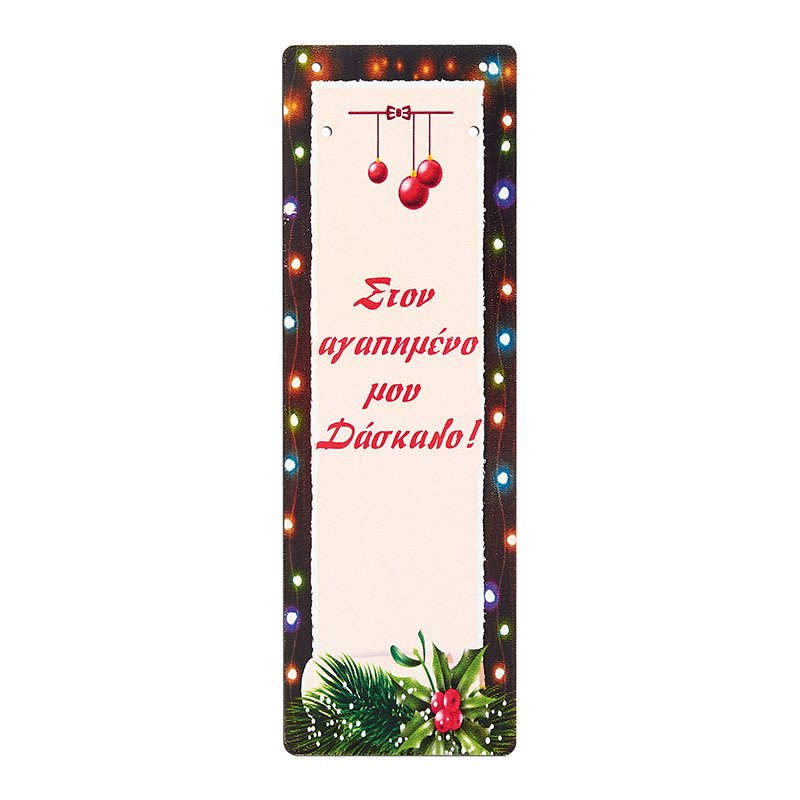 Πάνω στην πλάτη αναγράφεται το κείμενο: “Στον αγαπημένο μου δάσκαλο!”.