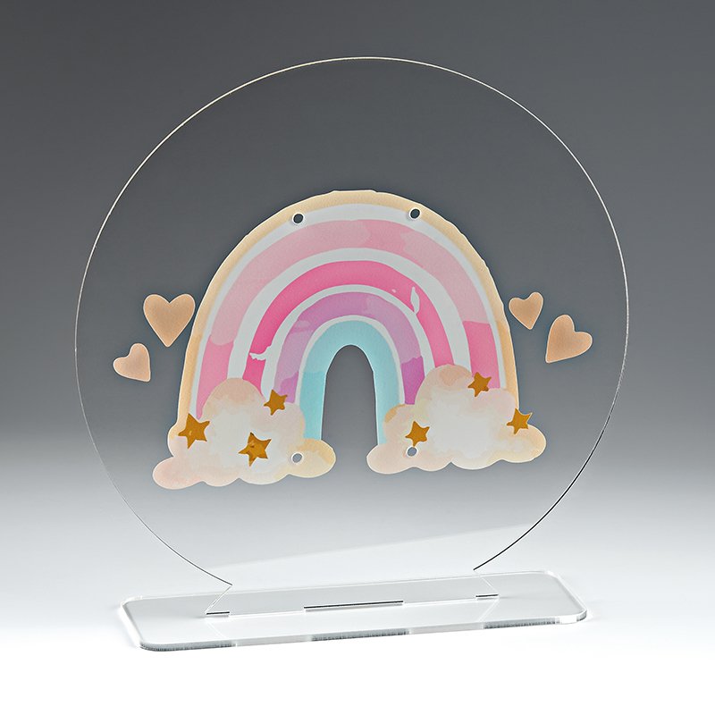 Επιτραπέζια βάση κατασκευασμένη από εξαιρετικής ποιότητας plexiglass με θέμα ουράνιο τόξο. Ιδανική επιλογή για να τοποθετήσετε την λαμπάδα σας ή και για να χαρίσετε ένα ιδιαίτερο πασχαλινό δώρο σε κάποιο αγαπημένο σας πρόσωπο. Πρακτικό αντικείμενο το οποίο μπορεί να χρησιμοποιηθεί και ως διακοσμητικό στο χώρο σας.