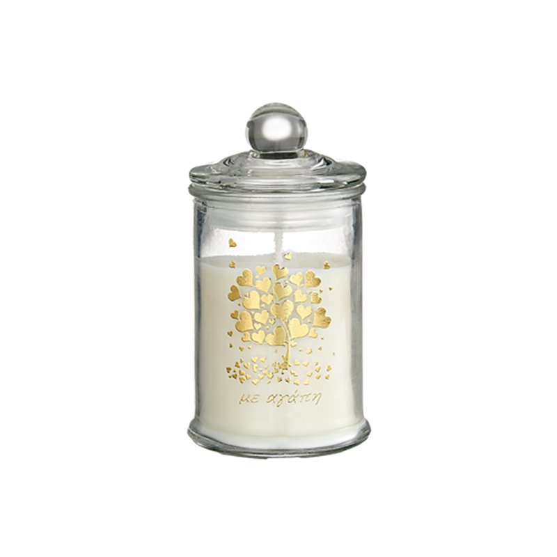 Γυάλινο Διάφανο Βάζο 150 ml με Καπάκι με Αρωματικό Κερί & Διακόσμηση “Love Tree”.