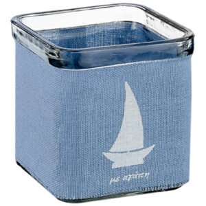 Be the first to review “Γυάλινο Κηροπήγιο Κύβος Ντυμένο με Λινό Μπλε Ύφασμα με Σχέδιο Καράβι”