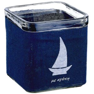 Be the first to review “Γυάλινο Κηροπήγιο Κύβος Ντυμένο με Λινό Σκούρο Μπλε Ύφασμα με Σχέδιο Καράβι”