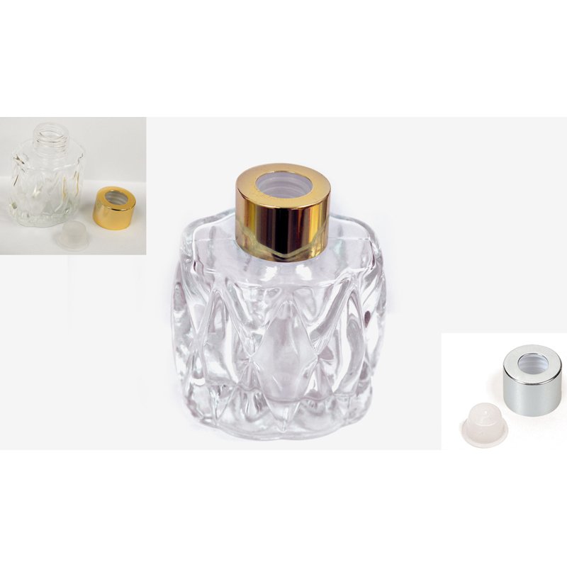 Μπουκάλι για αρωματικό χώρου με καπάκι σε χρυσό ή ασημί χρώμα κατασκευασμένο από εξαιρετικής ποιότητας γυαλί.