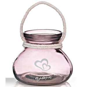 Κηροπήγιο σε ροδί χρώμα με ευχές και κορδόνι κατασκευασμένο από εξαιρετικής ποιότητας γυαλί με ιδιαίτερα κομψό σχεδιασμό.