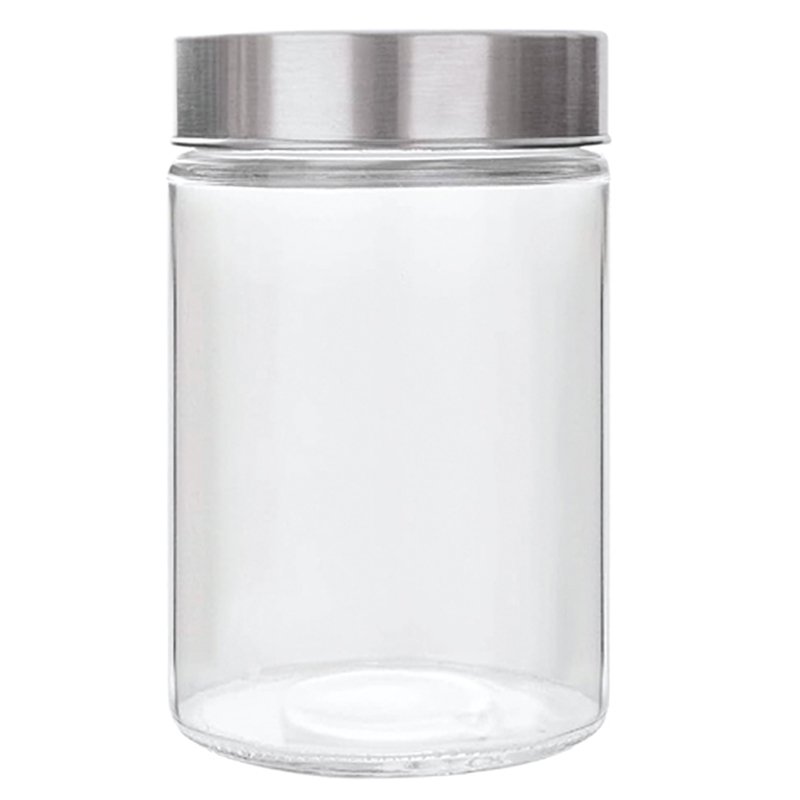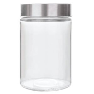 Βάζο με καπάκι από μέταλλο σε ασημί χρώμα κατασκευασμένο από εξαιρετικής ποιότητας γυαλί.