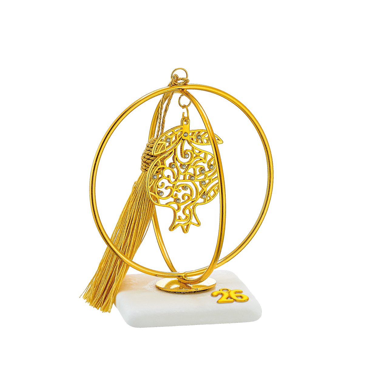 Γούρι 2026 Ρόδι Χρυσό με Κρύστ...