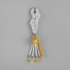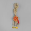 Το γούρι δένεται σε πολυτελές μπεζ πλεχτό κορδόνι, ενώ η κόκκινη φούντα ολοκληρώνει το σύνολο με ζωντάνια και παραδοσιακό χαρακτήρα.