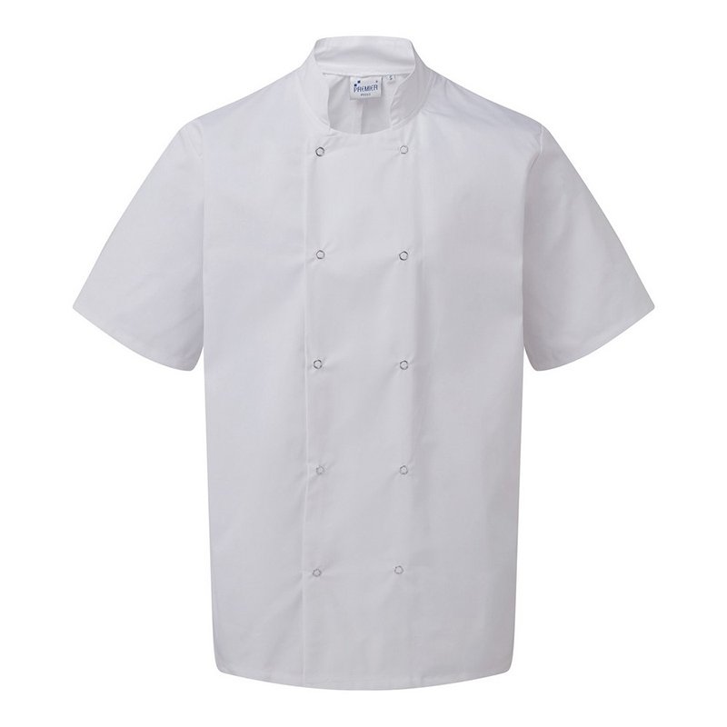 Σακάκι σεφ κοντομάνικο με τρουκς εξαιρετικής ποιότητας σε λευκό χρώμα.
