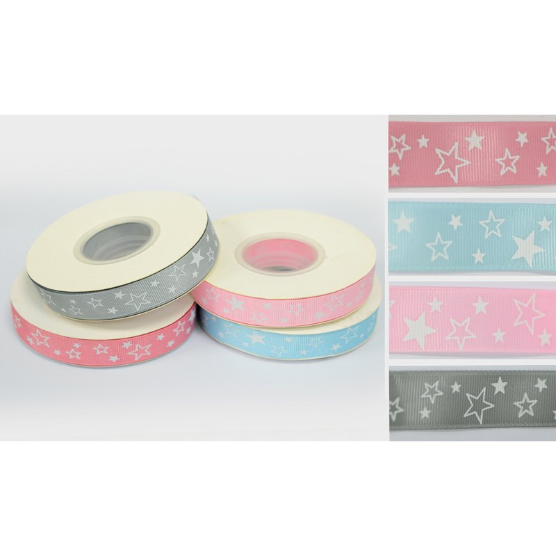 Κορδέλα Γκρο με Λευκά Αστέρια