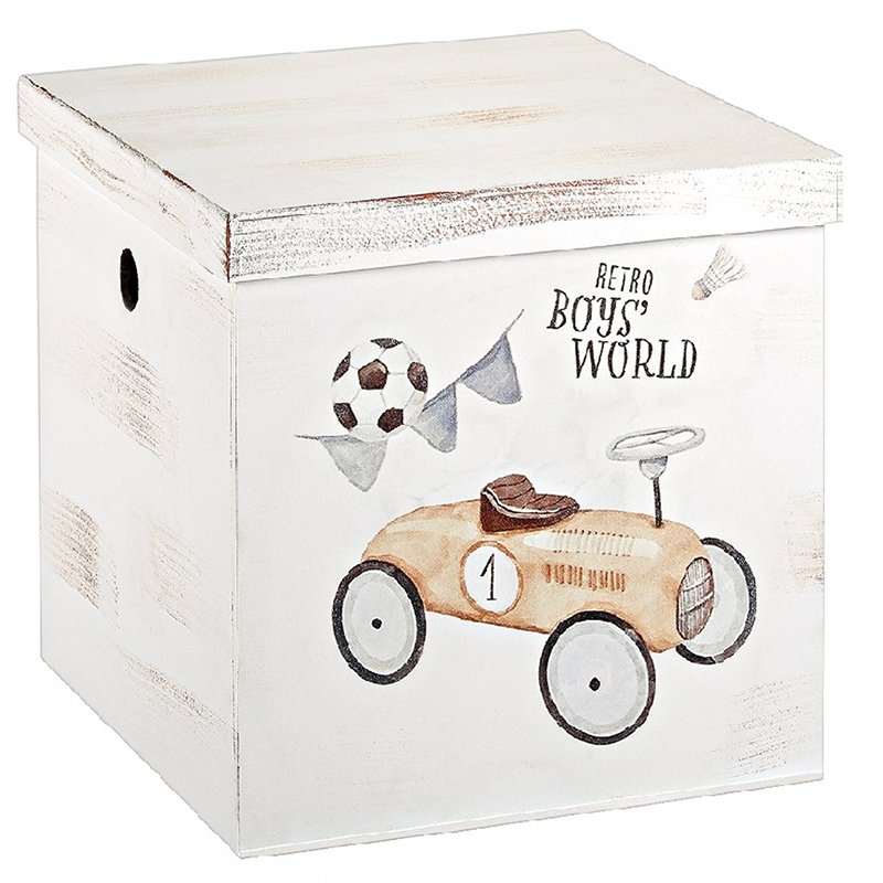 Εντυπωσιακό κουτί βάπτισης κύβος με θέμα retro car εξαιρετικής ποιότητας σε απαλά χρώματα.