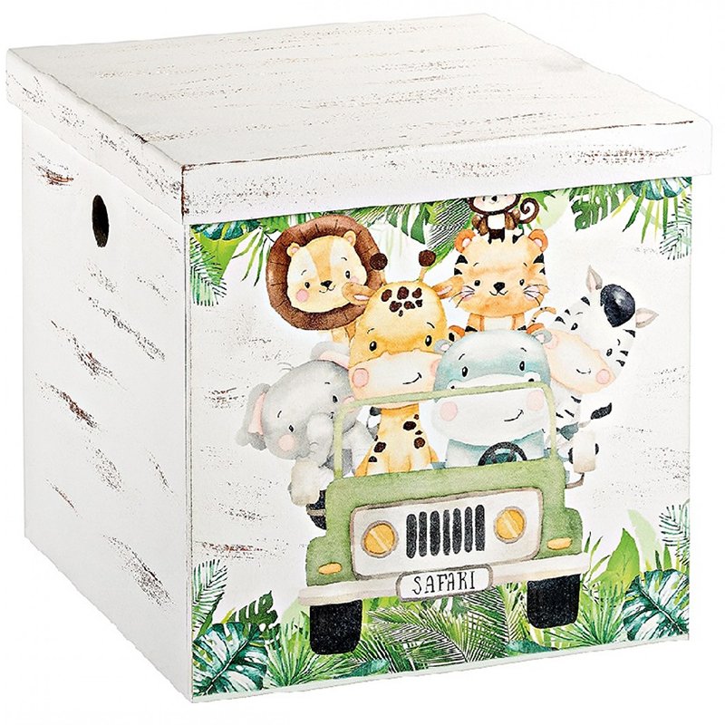 Εντυπωσιακό κουτί βάπτισης κύβος με θέμα safari animals εξαιρετικής ποιότητας σε απαλά χρώματα.