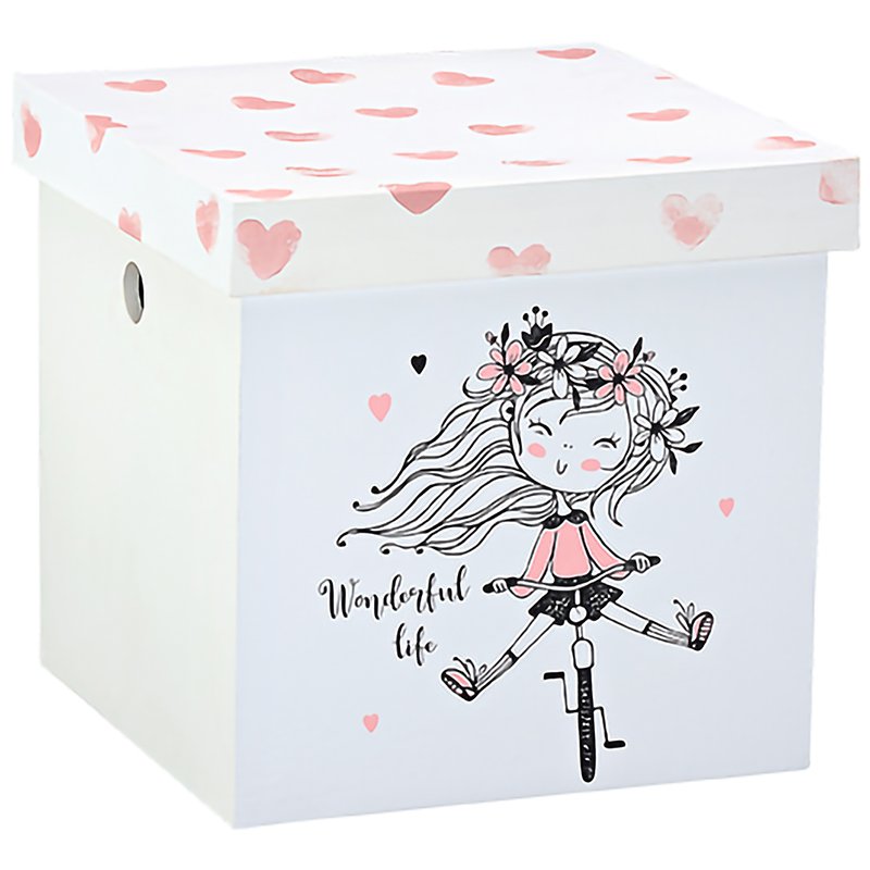 Εντυπωσιακό κουτί βάπτισης κύβος με θέμα wonderful girl εξαιρετικής ποιότητας με καρδιές.