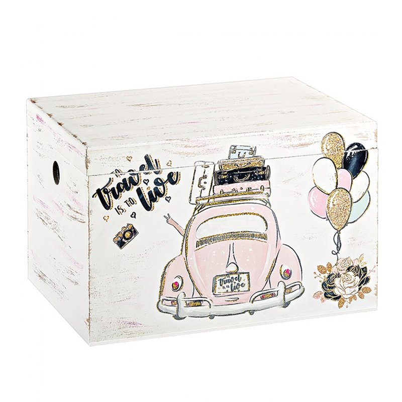 Εντυπωσιακό κουτί βάπτισης με θέμα ροζ αμάξι εξαιρετικής ποιότητας σε απαλά χρώματα.