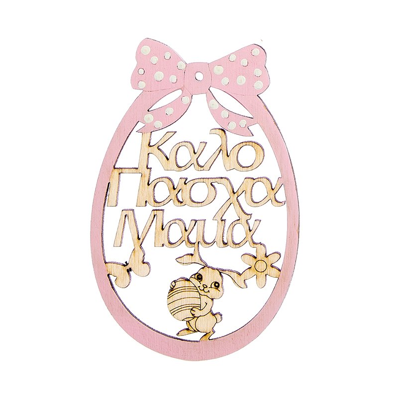 Ξύλινο διακοσμητικό αυγό “Καλό Πάσχα Μαμά” σε ροζ χρώμα κατασκευασμένο από εξαιρετικής ποιότητας υλικά.