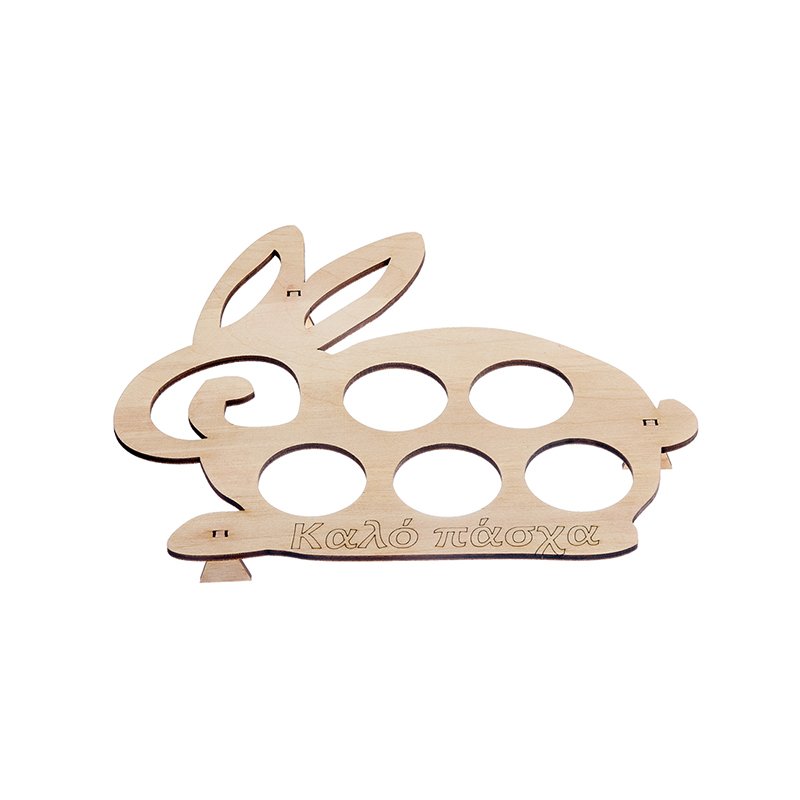 Ξύλινο διακοσμητικό σε σχήμα λαγουδάκι με πέντε θήκες για αυγά κατασκευασμένο από εξαιρετικής ποιότητας υλικά.