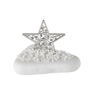 Βότσαλο σε ακανόνιστο σχήμα σε λευκό χρώμα με ασημί μεταλλικό αστέρι και στρας από εξαιρετικής ποιότητας υλικά.