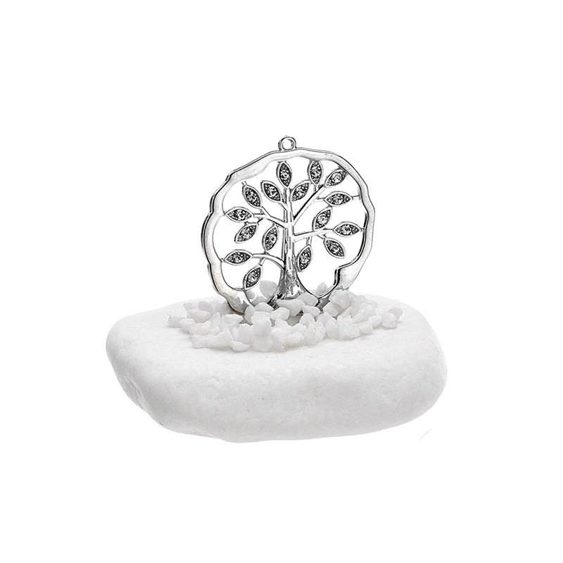 Λευκό Ακανόνιστο Βότσαλο με Ασημί Μεταλλικό Δέντρο της Ζωής και Στρας – Κομψό και συμβολικό διακοσμητικό στοιχείο, ιδανικό για μπομπονιέρες, θεματικά πάρτι, DIY δημιουργίες και ευχετήρια δώρα. Το φυσικό λευκό βότσαλο, με τον μοναδικό ακανόνιστο χαρακτήρα του, φιλοξενεί ένα περίτεχνο ασημί μεταλλικό Δέντρο της Ζωής, διακοσμημένο με λαμπερά στρας που προσθέτουν μια διακριτική πολυτέλεια και λάμψη.