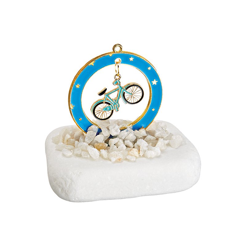 Στοιχείο: Γαλάζιος μεταλλικός κύκλος με σχέδιο ποδήλατο