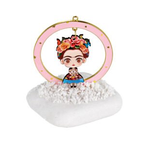 Το Λευκό Ακανόνιστο Βότσαλο με Ρόζ Μεταλλικό Κύκλο και Ξύλινη Frida Kahlo είναι ένα ξεχωριστό διακοσμητικό κομμάτι με έντονη προσωπικότητα και καλλιτεχνική ταυτότητα. Η ξύλινη φιγούρα της Frida Kahlo, σύμβολο δημιουργικότητας, δύναμης και ανεξαρτησίας, συνδυάζεται αρμονικά με τον ρομαντικό ροζ μεταλλικό κύκλο και το φυσικό, ακανόνιστο λευκό βότσαλο, δημιουργώντας ένα statement αντικείμενο.