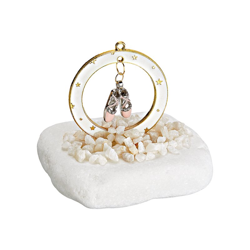 Βότσαλο σε ακανόνιστο σχήμα σε λευκό χρώμα με λευκό μεταλλικό κύκλο και πουέντ από εξαιρετικής ποιότητας υλικά.