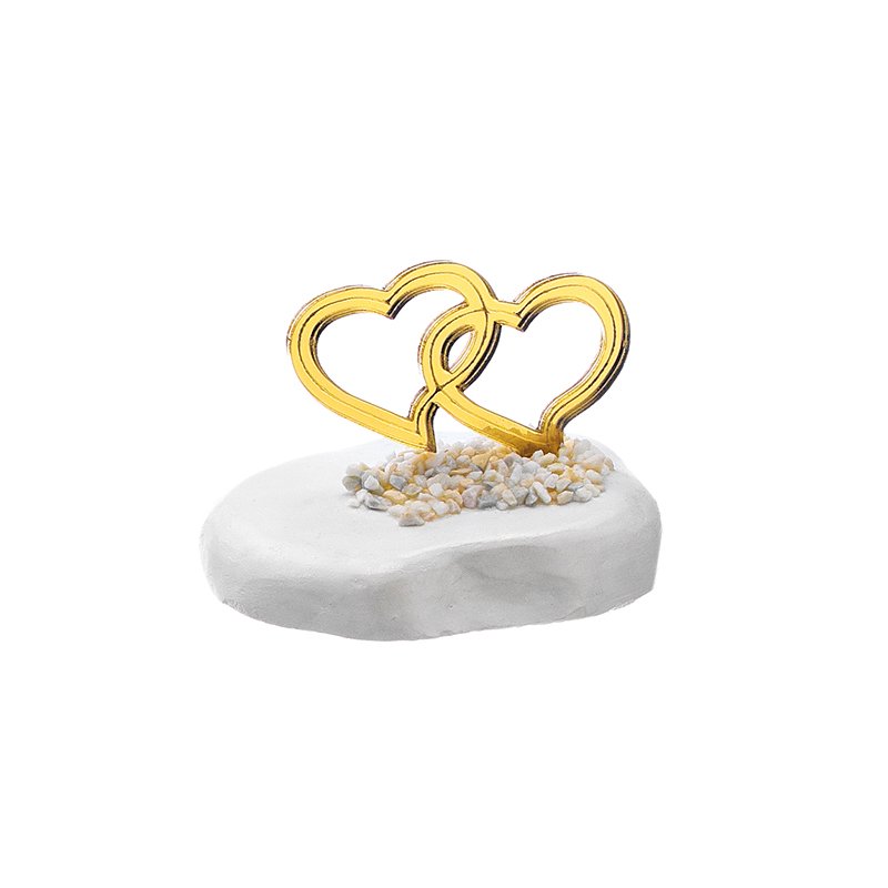 Ακανόνιστο βότσαλο σε λευκό χρώμα με χρυσές plexiglass καρδιές κατασκευασμένο από εξαιρετικής ποιότητας υλικά.