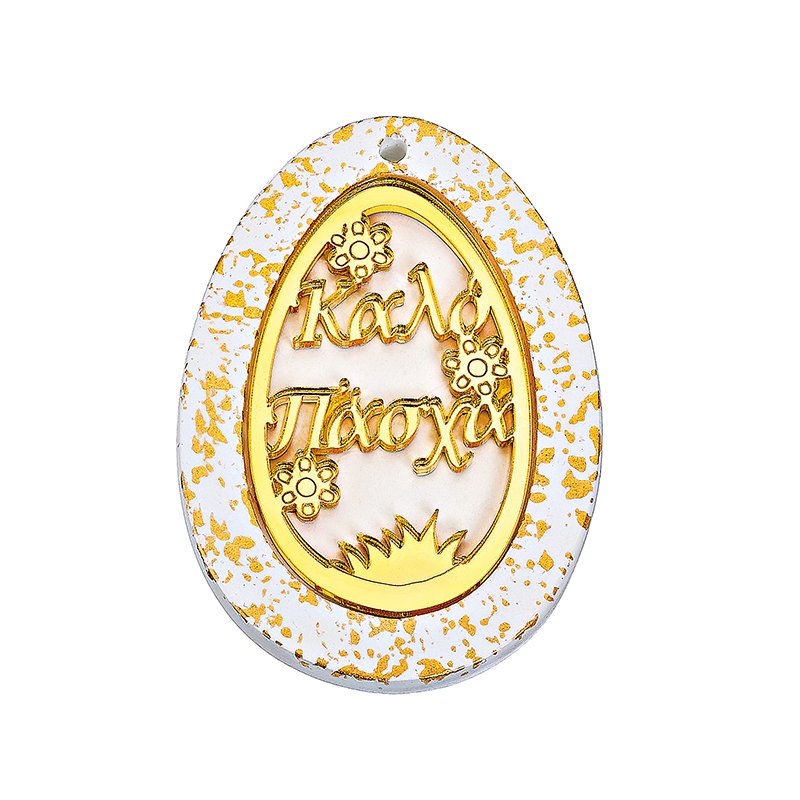 Κεραμικό διακοσμητικό σε σχήμα αυγού σε λευκό χρώμα με χρυσό plexiglass Καλό Πάσχα και τρύπα κατασκευασμένο από εξαιρετικής ποιότητας υλικά.