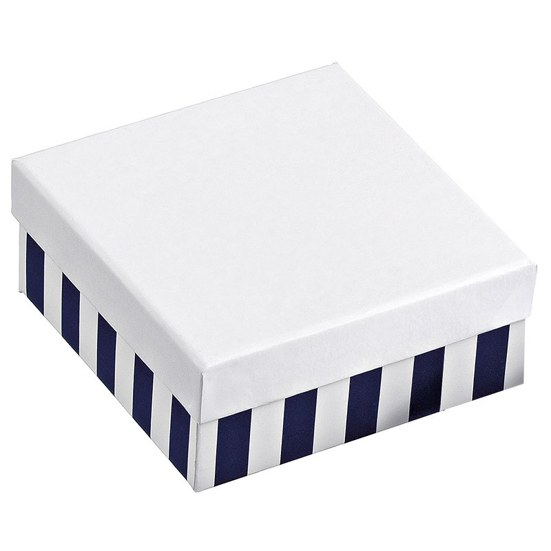 Κουτί χάρτινο λευκό με ρίγες σε σκούρο μπλε χρώμα κατασκευασμένο από εξαιρετικής ποιότητας υλικά.