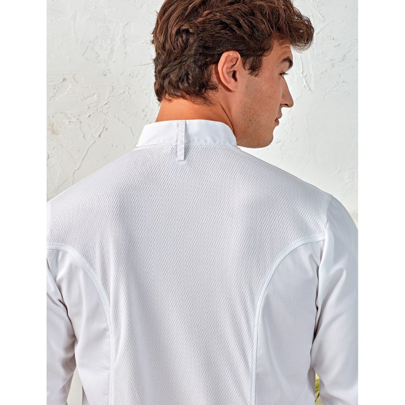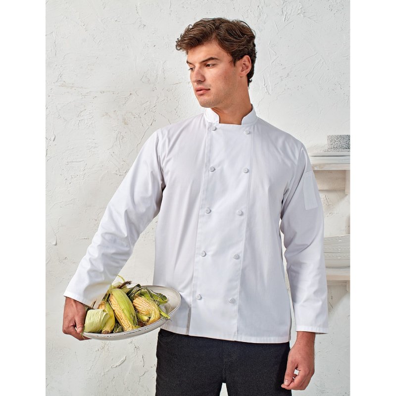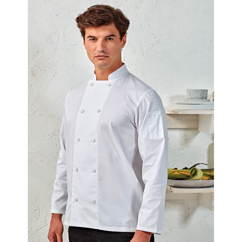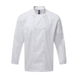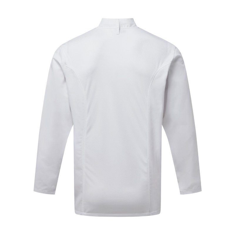 Σακάκι σεφ μακρυμάνικο με κουμπιά διαπνέον coolchecker εξαιρετικής ποιότητας σε λευκό χρώμα.
