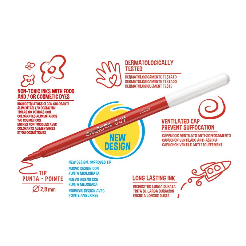 - Ασφαλείς και Μη Τοξικοί: Όπως όλα τα προϊόντα Carioca, οι μαρκαδόροι Joy είναι μη τοξικοί και κατασκευασμένοι σύμφωνα με τα υψηλότερα πρότυπα ασφαλείας. Μπορείτε να αφήσετε τα παιδιά να τους χρησιμοποιούν άφοβα.