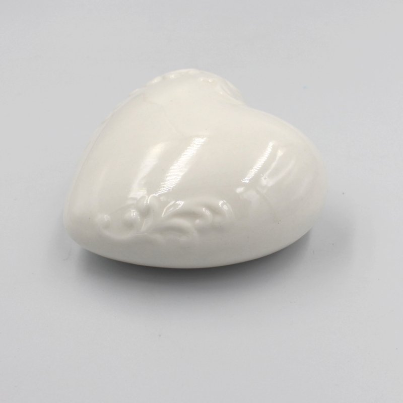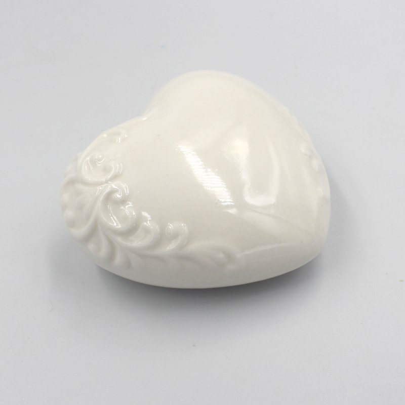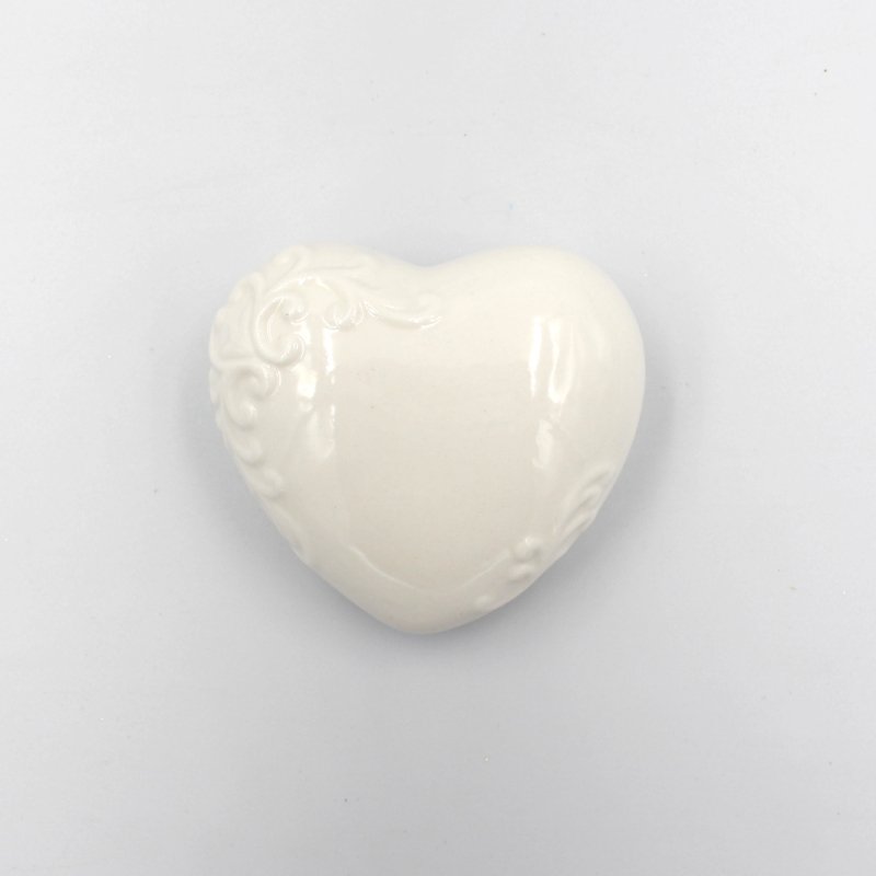 Μπομπονιέρα βάπτισης καρδιά από πορσελάνη σε διαστάσεις 8 x 8,5 x 3,5εκ.