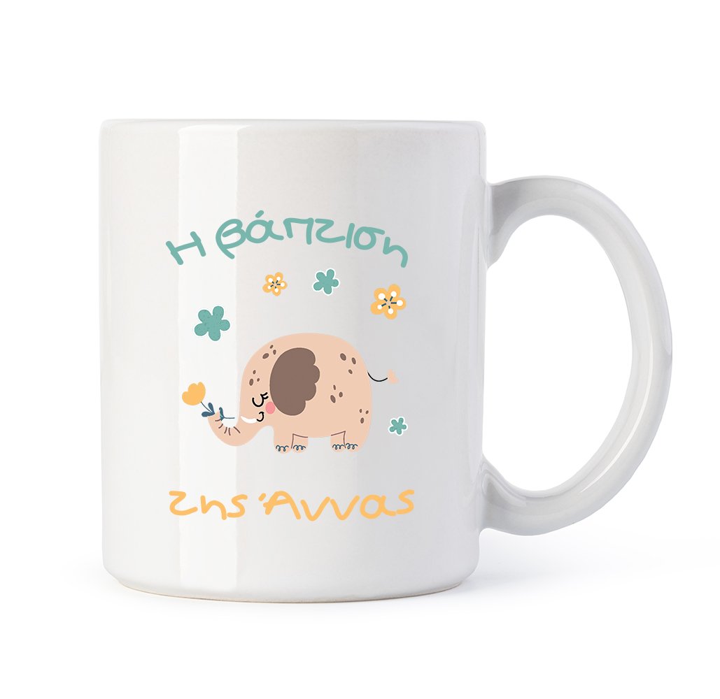 Προσωποποιημένη Μπομπονιέρα Βάπτισης Κεραμική Κούπα Ελεφαντάκι με την Υπογραφή Ποιότητας Καραβερβέρης